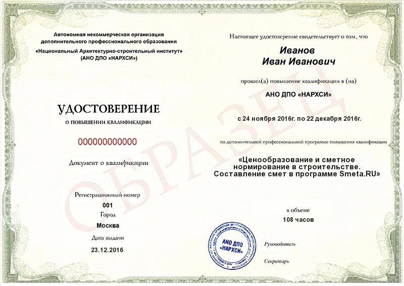 Удостоверение о повышении квалификации Удостоверение действует на территории всей России и признается государственными и частными организациями