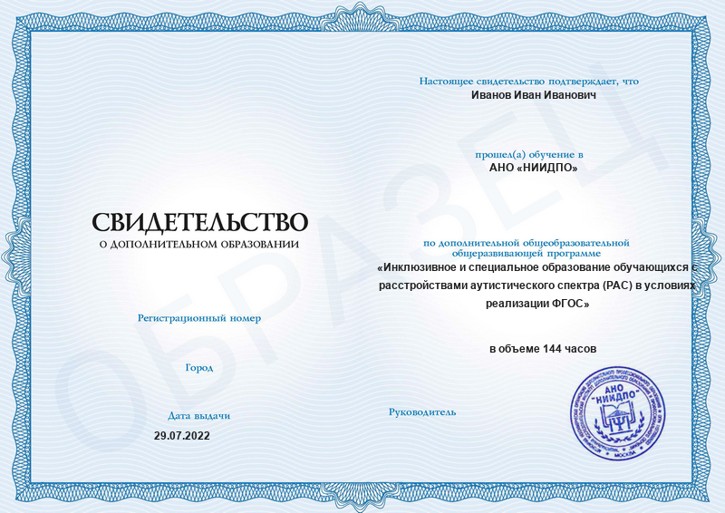 Инклюзивное и специальное образование обучающихся с расстройствами аутистического спектра (РАС) в условиях реализации ФГОС (144ч)