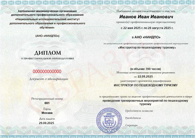 Инструктор по пешеходному туризму может официально проводить походы после аттестации. Чтобы ее пройти, нужно предоставить диплом о среднем или высшем профессиональном образовании по специальностям, связанным с туризмом, либо диплом о профессиональной переподготовке / удостоверение о повышении квалификации / свидетельство об окончании курсов.