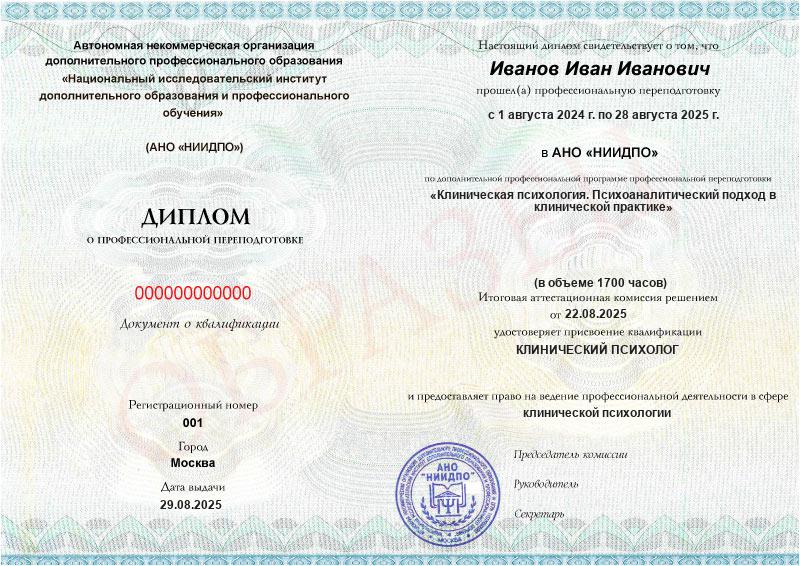 Клиническая психология. Психоаналитический подход в клинической практике (1700ч)
