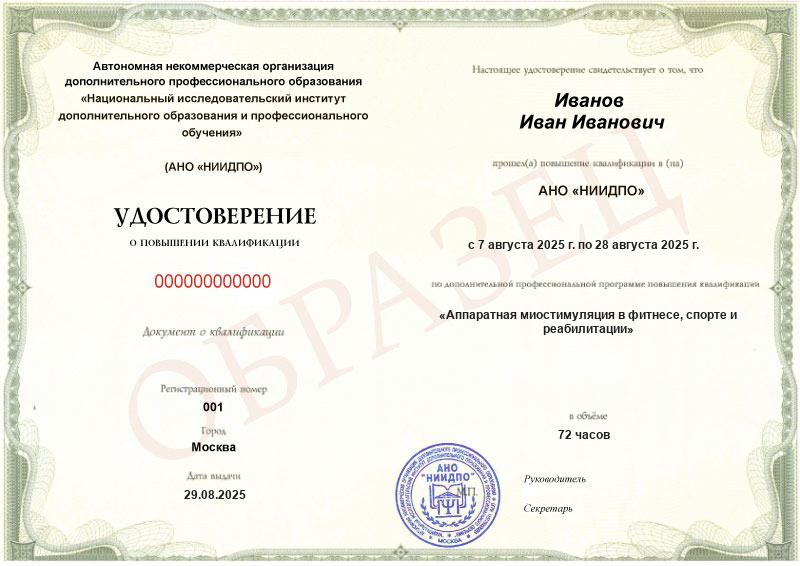 Обзор программы повышения квалификации «Аппаратная миостимуляция в фитнесе, спорте и реабилитации»