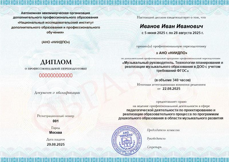 Диплом о профессиональной переподготовке московского института