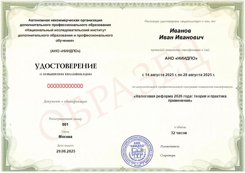 Обзор программы повышения квалификации «Налоговая реформа 2026 года: теория и практика применения»