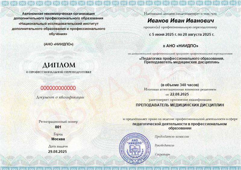 Всем, кто серьезно настроен получить новую профессию или подтвердить квалификацию, и готов вкладывать время и силы! Если вы ищете качественные курсы переподготовки в сфере педагогики, смело рекомендую АНО ДПО «НИИДПО и ПО» и программу «Педагогика профессионального образования. Преподаватель медицинских дисциплин». Обучение было сложным, временами очень интенсивным, но невероятно интересным и ОЧЕНЬ результативным! 10/10.