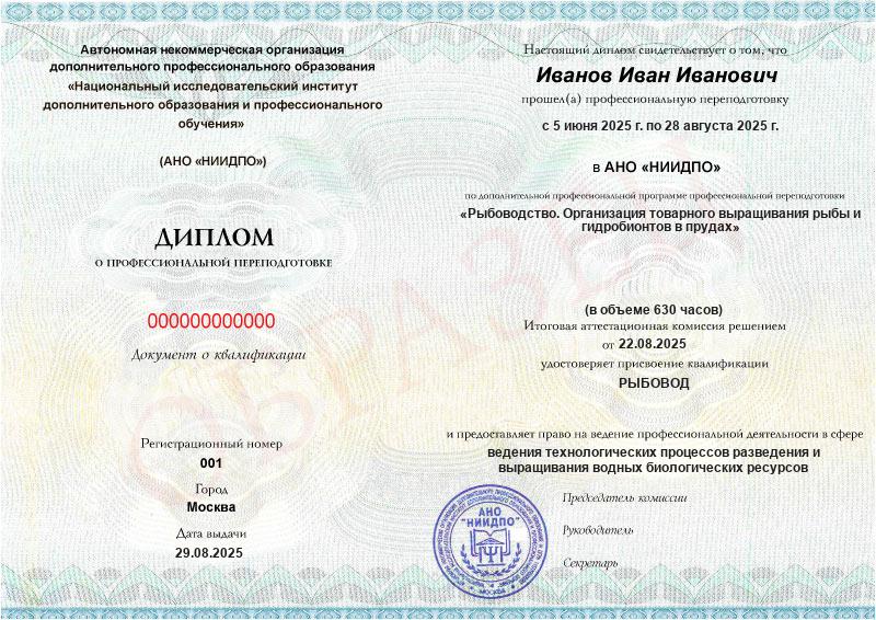 Обзор программы профессиональной переподготовки «Рыбоводство. Организация товарного выращивания рыбы и гидробионтов в прудах» с присвоением квалификации «Рыбовод»
