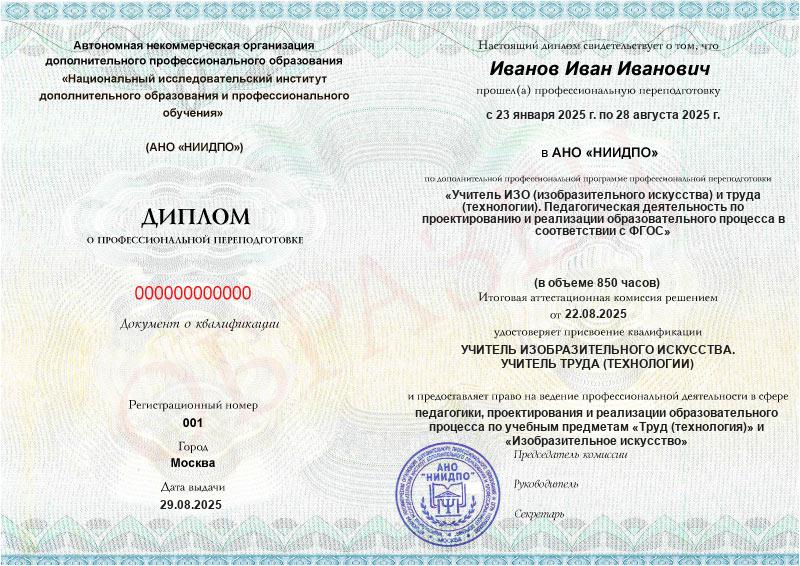 Начните работать учителем ИЗО и труда сразу после получения диплома!
