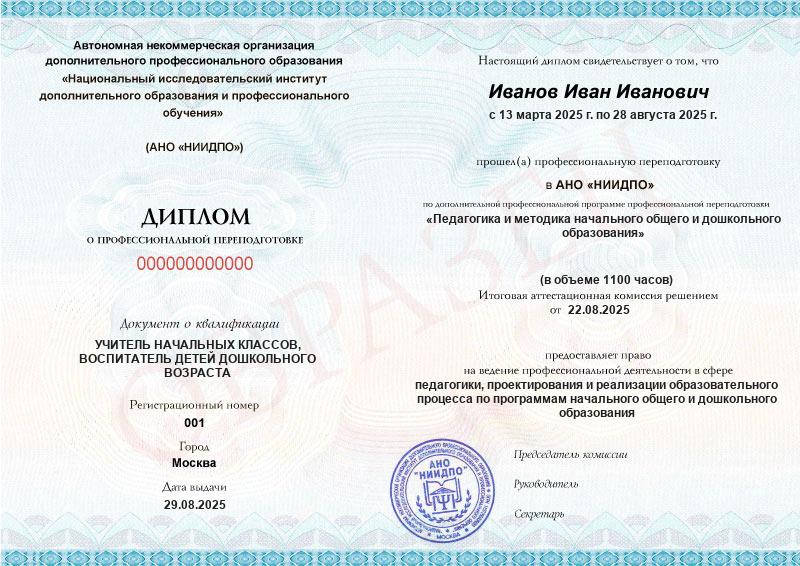 Да, документы оформляются на бланках с защитой от подделок, заполняются на русском языке, в них ставится печать АНО «НИИДПО».