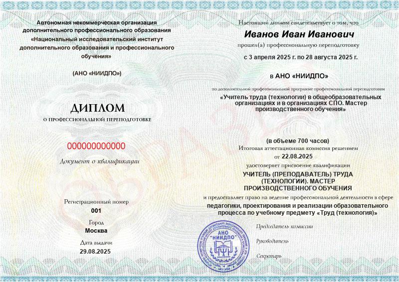 Обзор программы профессиональной переподготовки «Учитель труда (технологии) в общеобразовательных организациях и в организациях СПО. Мастер производственного обучения» с присвоением квалификации «УЧИТЕЛЬ (ПРЕПОДАВАТЕЛЬ) ТРУДА (ТЕХНОЛОГИИ). МАСТЕР ПРОИЗВОДСТВЕННОГО ОБУЧЕНИЯ»