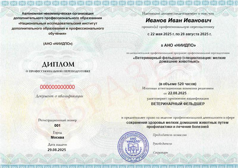 Ветеринарный фельдшер (специализация: мелкие домашние животные) (520ч)